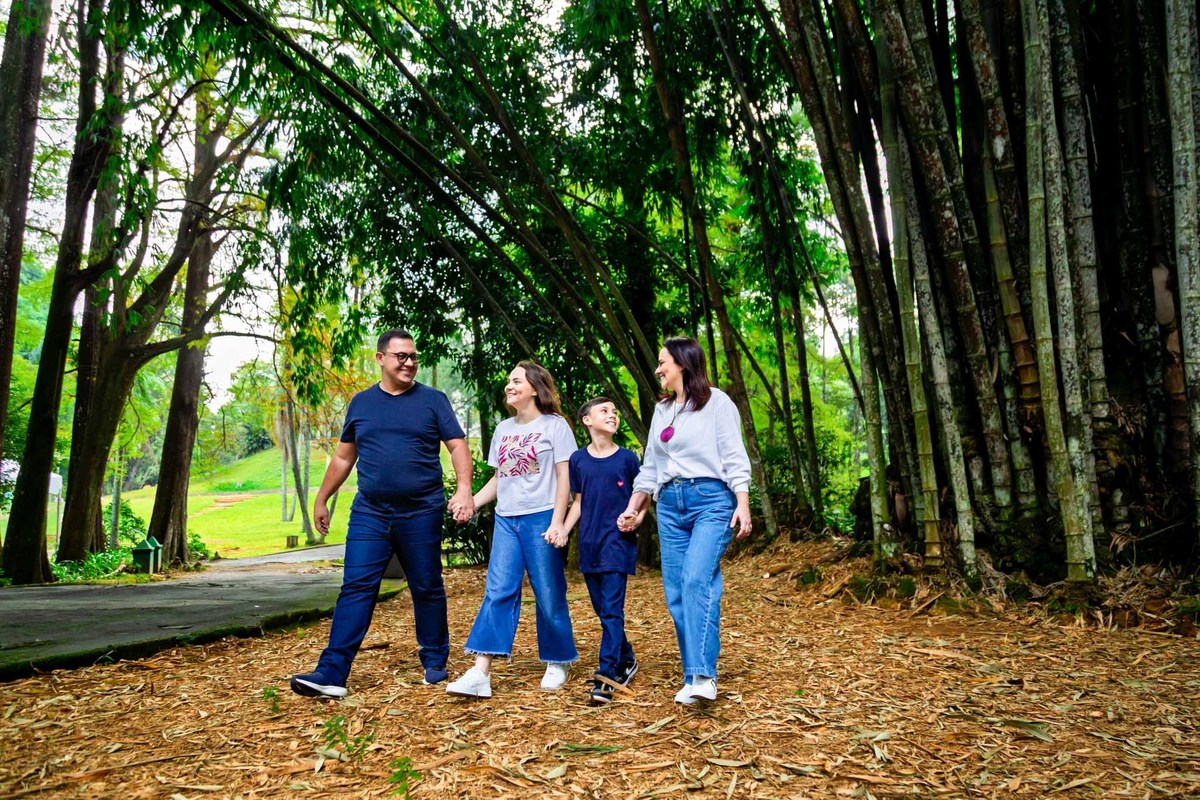 Em meio à natureza exuberante do Horto Florestal de São Paulo, a família Mansoreitch viveu uma tarde especial, cheia de afeto, risos e momentos inesquecíveis. Cercados por árvores centenárias, trilhas suaves e uma luz natural que parecia feita sob medida, Maira e Walmir deixaram transparecer o amor que os une e que transborda em seus filhos, Gabi e Pedro.
